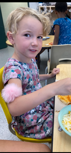 - Science/Sensory: In the Kindergarten program the science and sensory area includes all the experiences that past classrooms have offered, plus the addition of experiments. We encourage each child to use their mind to think ahead when asked to predict outcomes. Watching ice turn to water and to estimate how long the process will take, or watching colored water climb a celery stalk and guessing what will happen, are examples of experiments a child in kindergarten are excited to watch. They have the social skills to then return home and want to show their family what they have learnt. Baking day is always a favorite! Making cookies, muffins, and apple sauce is always a delicious treat. Your child will love being involved in measuring, stirring, and eating their goods.