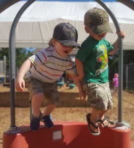 Musical Movement: On an ongoing basis, music is happening in the classrooms. The children sing the ‘Thank You Song’ at mealtime, sing ‘Tidy Up’ when the toys need to be put away, and there are songs and finger plays happening throughout the day. Other group activities include exposure to various musical instruments, enjoying playing instruments while marching in a parade through the daycare, dancing to music with scarves or ribbons, painting to music, or simply dancing with a friend!