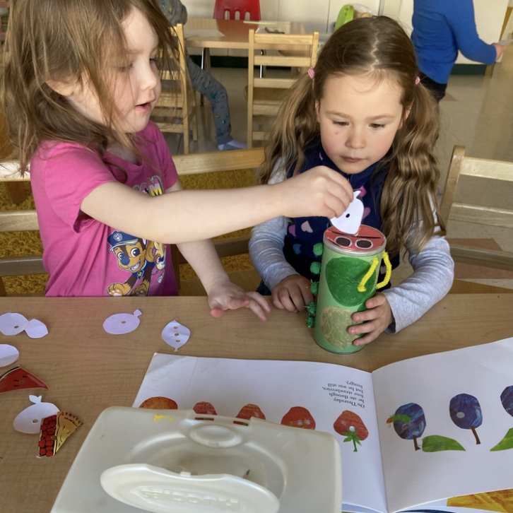 Our schedules are always flexible, changing to meet the needs of the children on any given day. During the spring and summer, the children often eat their morning and afternoon snacks outside in the playground. In the colder weather, indoor play often extends past morning snack. On “library days”, the morning outdoor time is replaced by a walk to the local library for story time with the librarian.